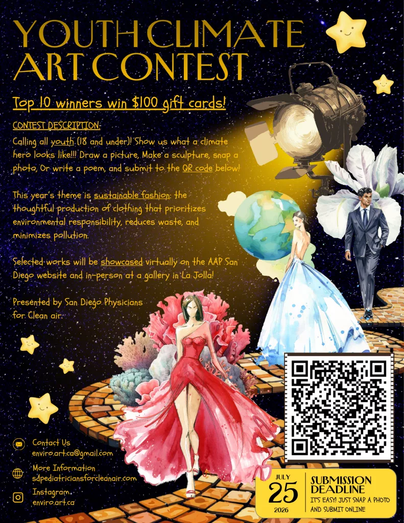 Express your creativity while exploring how sustainable fashion can shape a healthier future for our planet. The 2026 Enviro-Art Climate Change & Health Youth Art Exhibition invites you to create original artwork that highlights innovative, thoughtful, and environmentally responsible approaches to clothing and design.
