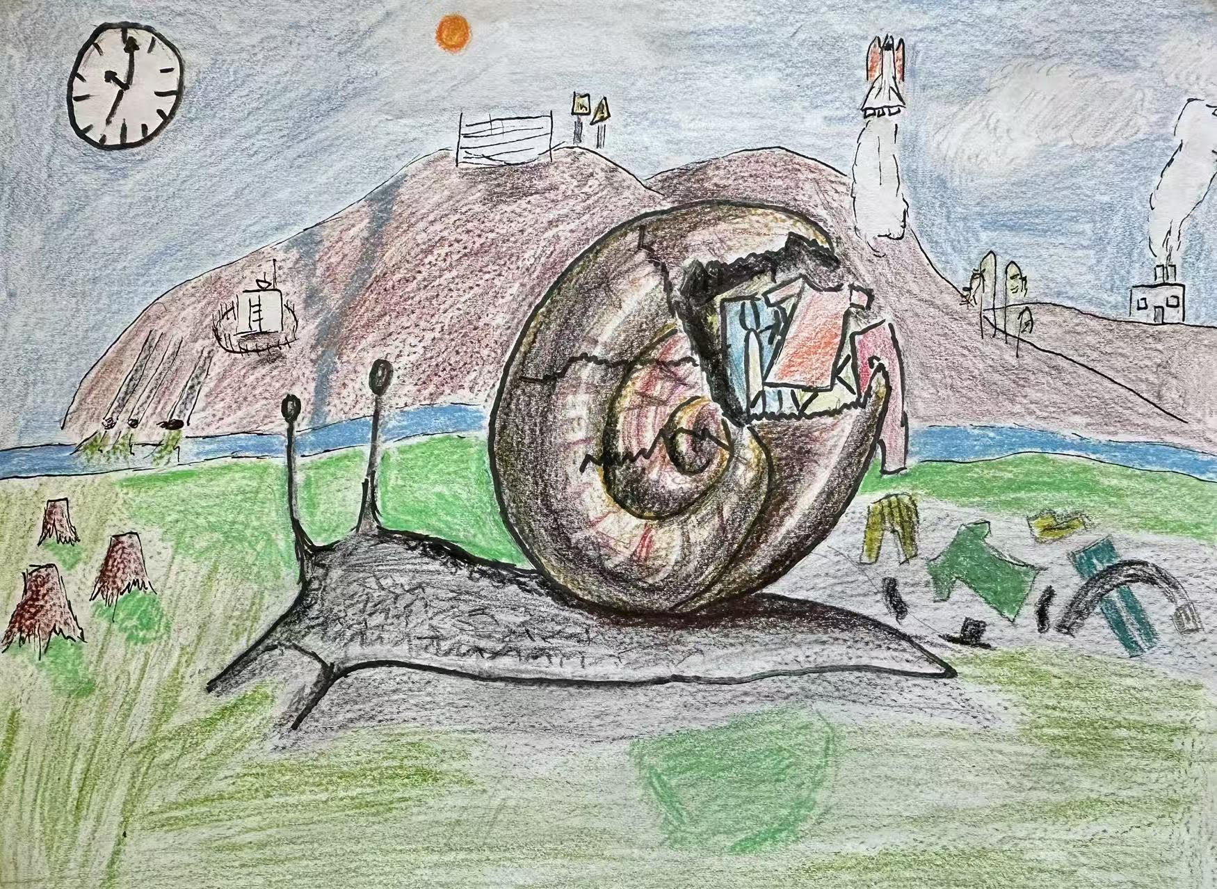 Evan Zhang – The Clock, the Snail, and the Mountain (Age 7-10, 2D/3D)