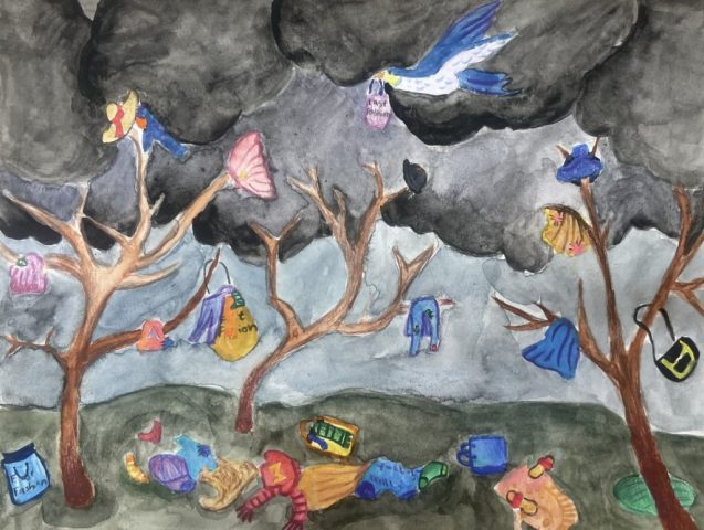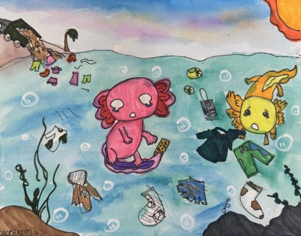 This year, we invited the New York State Children’s Environmental Health Centers (NYSCHECK) to host their own Enviro-Art–inspired fast fashion children’s climate art exhibition. It was a big success—in collaboration with the New York State district of the American Academy of Pediatrics (NYS AAP), they showcased the artworks in celebration of Children’s Environmental Health Day and in support of the New York Fashion Act. Check out all the amazing pieces here