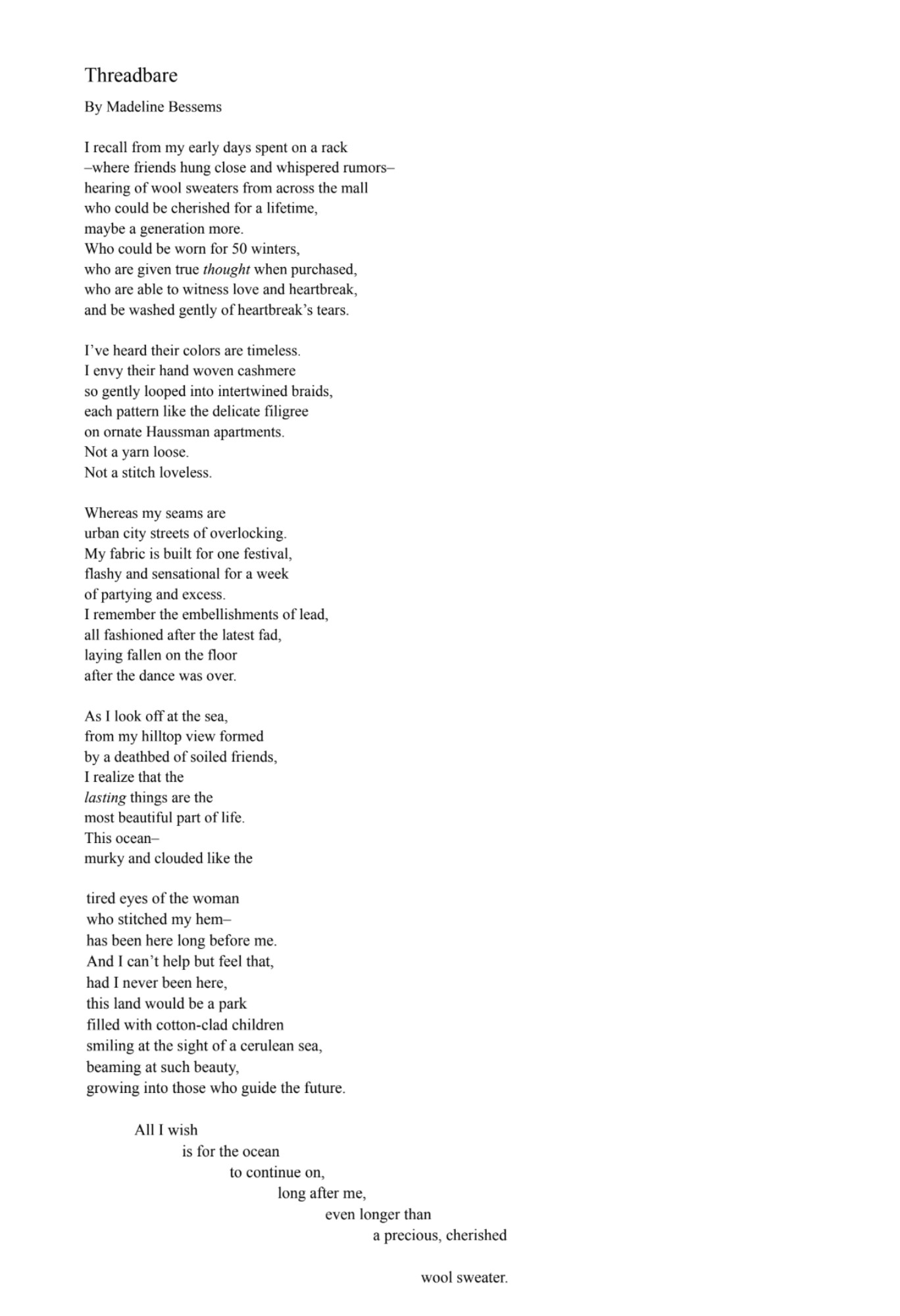 Madeline Bessems – Threadbare (Age 14-18, Poetry)